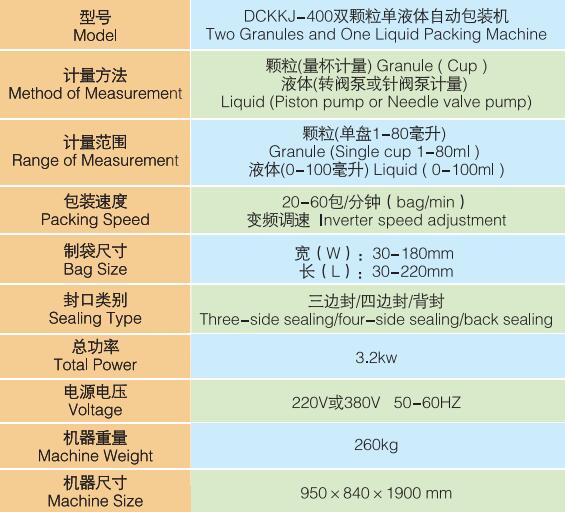 DCKKJ-400雙顆粒單液體三列自動包裝機